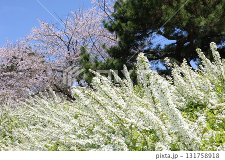 春の日差しを受けて眩しく咲き誇るユキヤナギ