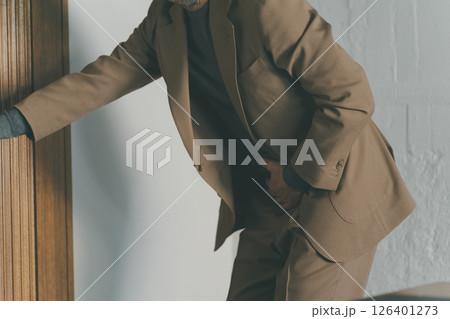 便秘症のシニア男性(下腹部が張り、不快感がある)