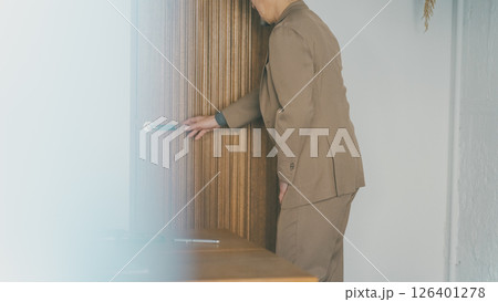 便秘症の若い女性(下腹部が張り、ドレスが上手く着こなせない)