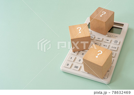 金額、値段、価格、相場|ハテナマークの積み木と電卓