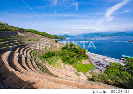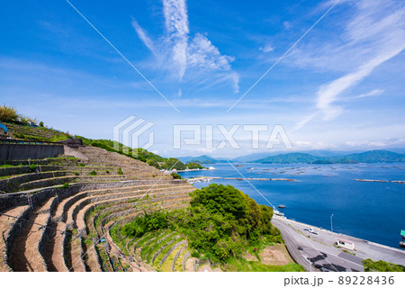 愛媛県宇和島市 遊子水荷浦の段畑とガザニアの花