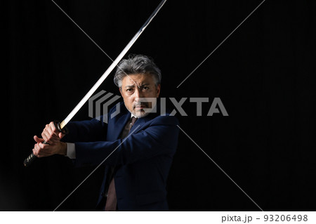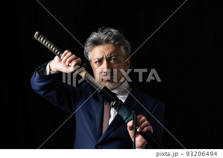 日本刀を持つ男性 黒バック