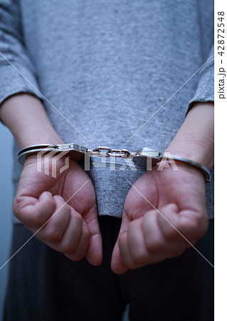 手錠 逮捕 (犯罪 違法 犯人 悪人 容疑者 事件 犯罪者 不審者 侵入 泥棒 顔なし 凶悪犯)