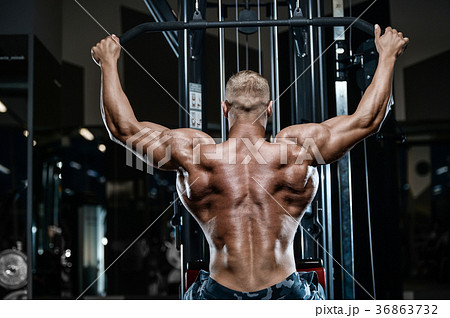 Brutal man's workout in gym