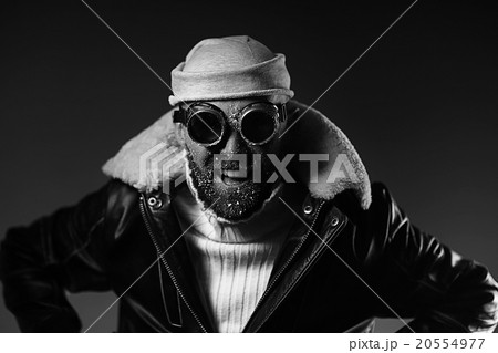 brutal portrait of a bearded man winter snow goggles