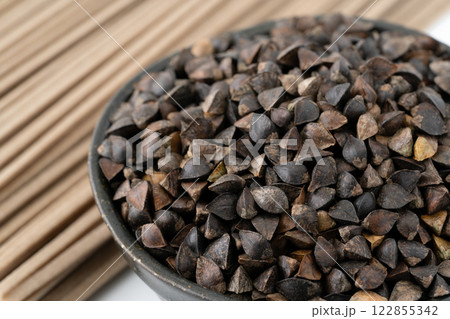 十割そばの乾麺と玄そば(殻つきのそばの実)