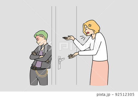 Angry mother talking to teen goth child