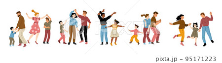Flat set of parents dancing with children