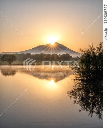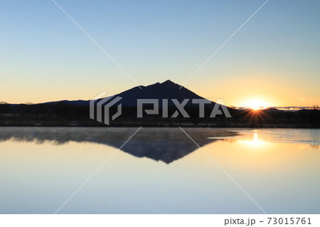 茨城県筑西市 母子島遊水地の筑波山と日の出