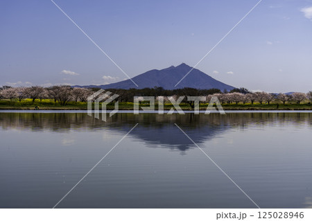 茨城県筑西市母小島遊水地に映る筑波山と桜並木