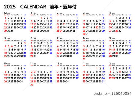 2025年カレンダー|15か月分|前年・翌年付き|令和7年カレンダー