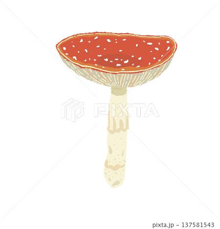 ベニテングダケ(単体・傘が開いた)の手描きイラスト素材