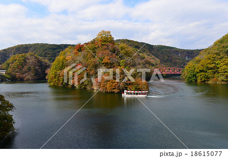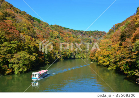 帝釈峡神龍湖を走る遊覧船の景色