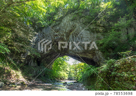 名勝・帝釈川の谷(帝釈峡)にかかる石灰岩の天然橋・雄橋