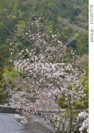 毘沙門堂 本堂と咲き始めのサクラ(京都市山科区)