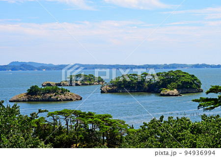 宮城県 松島町 松島湾 遊歩道から布袋島、毘沙門島、大黒島を展望する