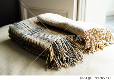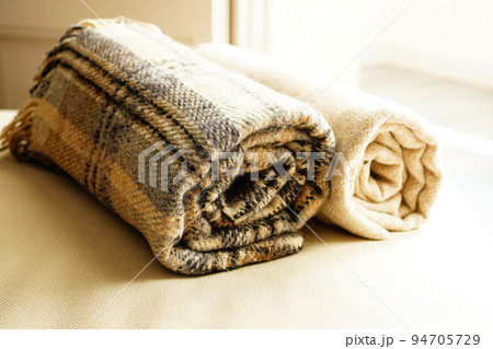 冬の午後の光と暖かいウールのブランケット (毛布)