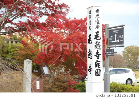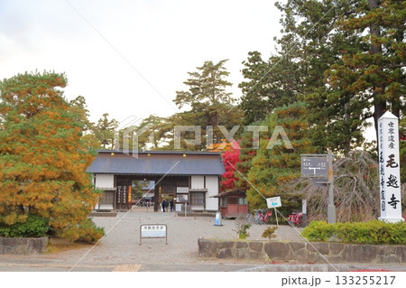 岩手県 平泉 世界遺産 毛越寺 境内の紅葉と松