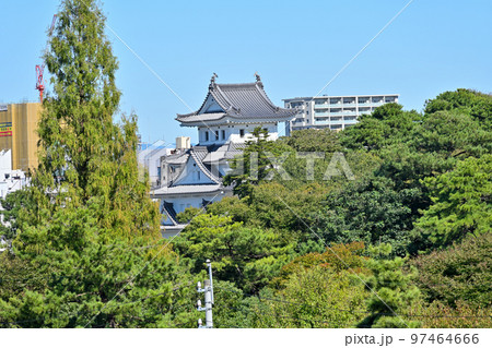 よく晴れた美濃国「大垣城」の天守閣と石垣