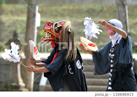 背景付きの獅子舞