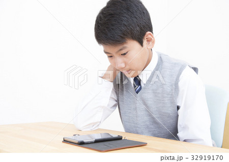 スマホが気になる学生男の子 スマホ依存症 スマホ中毒