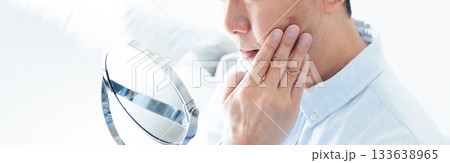 鏡を見る中高年男性