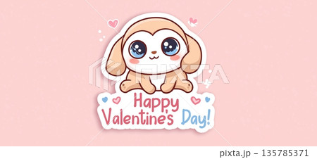 Cute big-eyed animal delivering Happy Valentine's Day message. Cute cartoon animal holding a pink sign for Valentine's Day celebration
