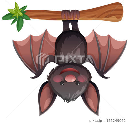 Cartoon Bat Hanging Upside Down from Tree Branch