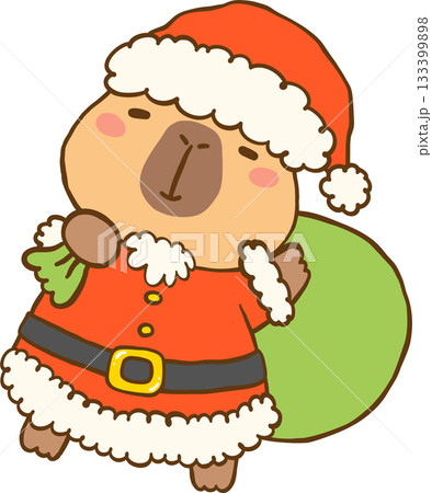 Kawaii Christmas Capybara Santa Claus with Sack Cartoon Hand Drawn