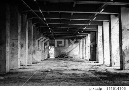 空き倉庫・廃墟・殺風景のイメージ モノクロ