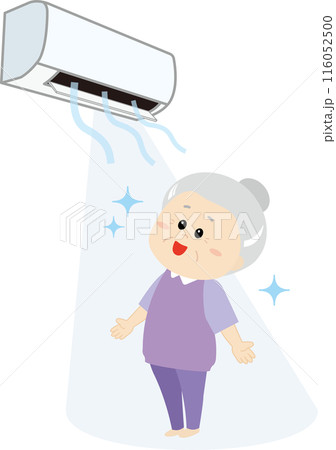 エアコンで涼むシニア女性2