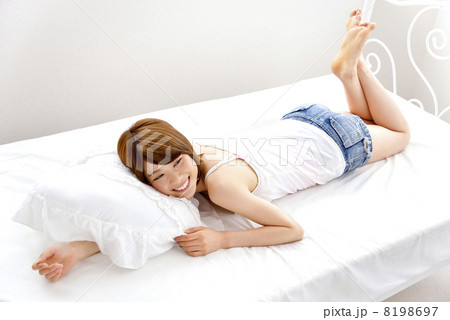 ベットの上でリラックスする女性