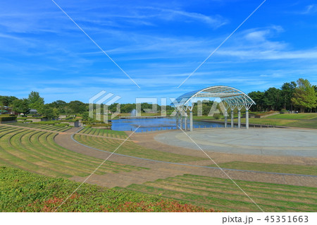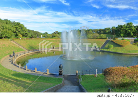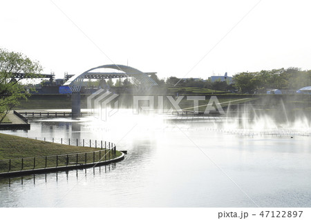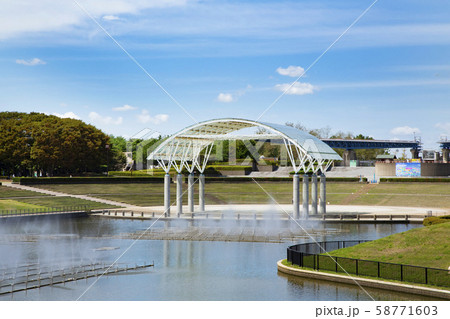 国営ひたち海浜公園 夕暮れの水のステージと翼のゲート