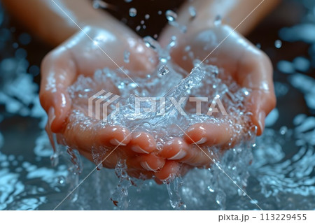 きれいな水とエコロジーのイメージ(手できれいな水をすくう)