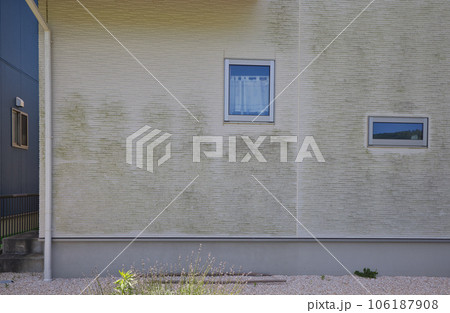 緑色に汚れた白い外壁