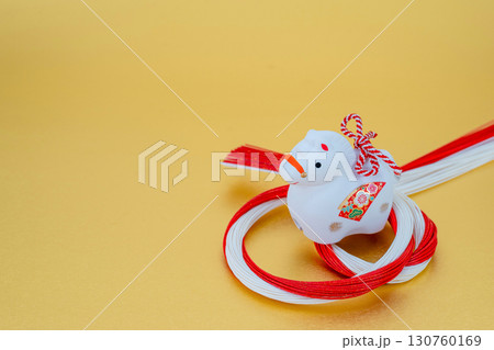 午年 年賀素材 白午と水引飾り 金色バック