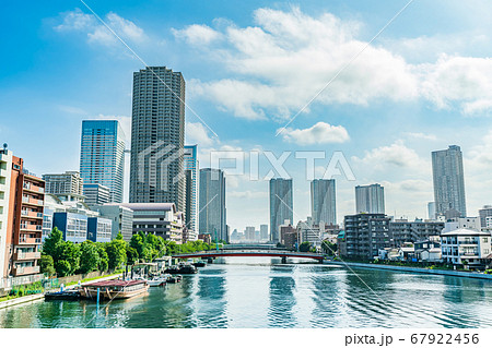 東京都市風景 隅田川と街並み 隅田川テラス 越中島公園