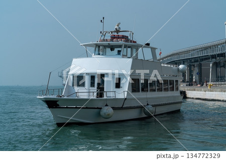 Passenger ferry boat moored at pier in port terminal Venice, Italy