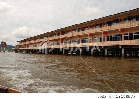 ブルネイ川・水上集落(カンポン・アイール)にある学校(バンダルスリブガワン/ブルネイ)