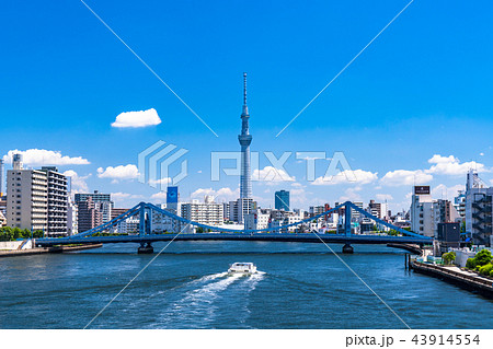 日本の東京都市景観 隅田川や東京スカイツリーなどを望む