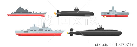 Military Boats and Different Type of Naval Combat Ship Vector Set