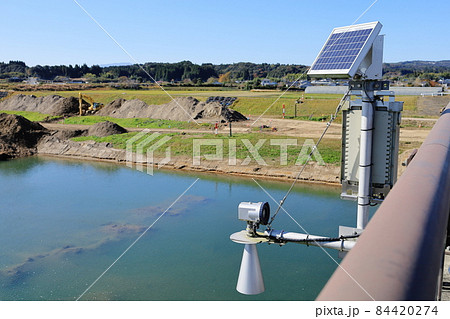 国土交通省により設置された水位流量観測所の計測機器 洪水多発後に設置された自動無人観測所と機器