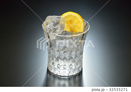 注意)透明な液体は水です。焼酎アルコール飲料のイメージ。(焼酎水割り、焼酎ロック)