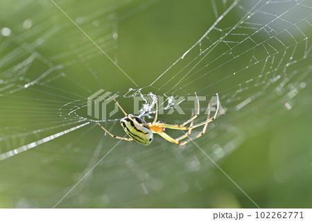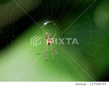 アシナガグモ科コシロガネグモ♀の水平円網