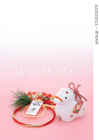 午年 年賀素材 白午の干支飾りと松竹梅と宝船