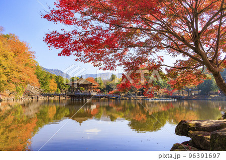 紅葉真っ盛りの奈良公園浮御堂