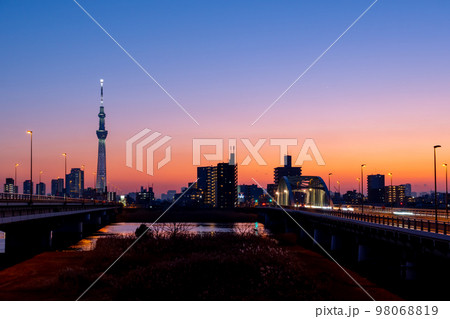 東京・荒川とスカイツリーライトアップ