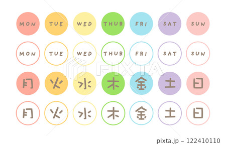 曜日の円形スタンプアイコン カラフルセット