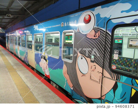 米子駅、ゲゲゲの鬼太郎のラッピング電車車