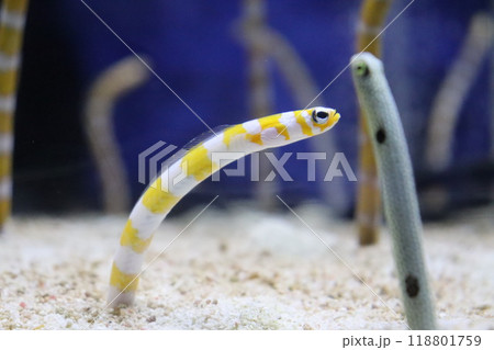 チンアナゴ 海底 海の底 砂 砂山 海 海中 水槽 水族館 珍しい かわいい 生物 生き物 あお 青